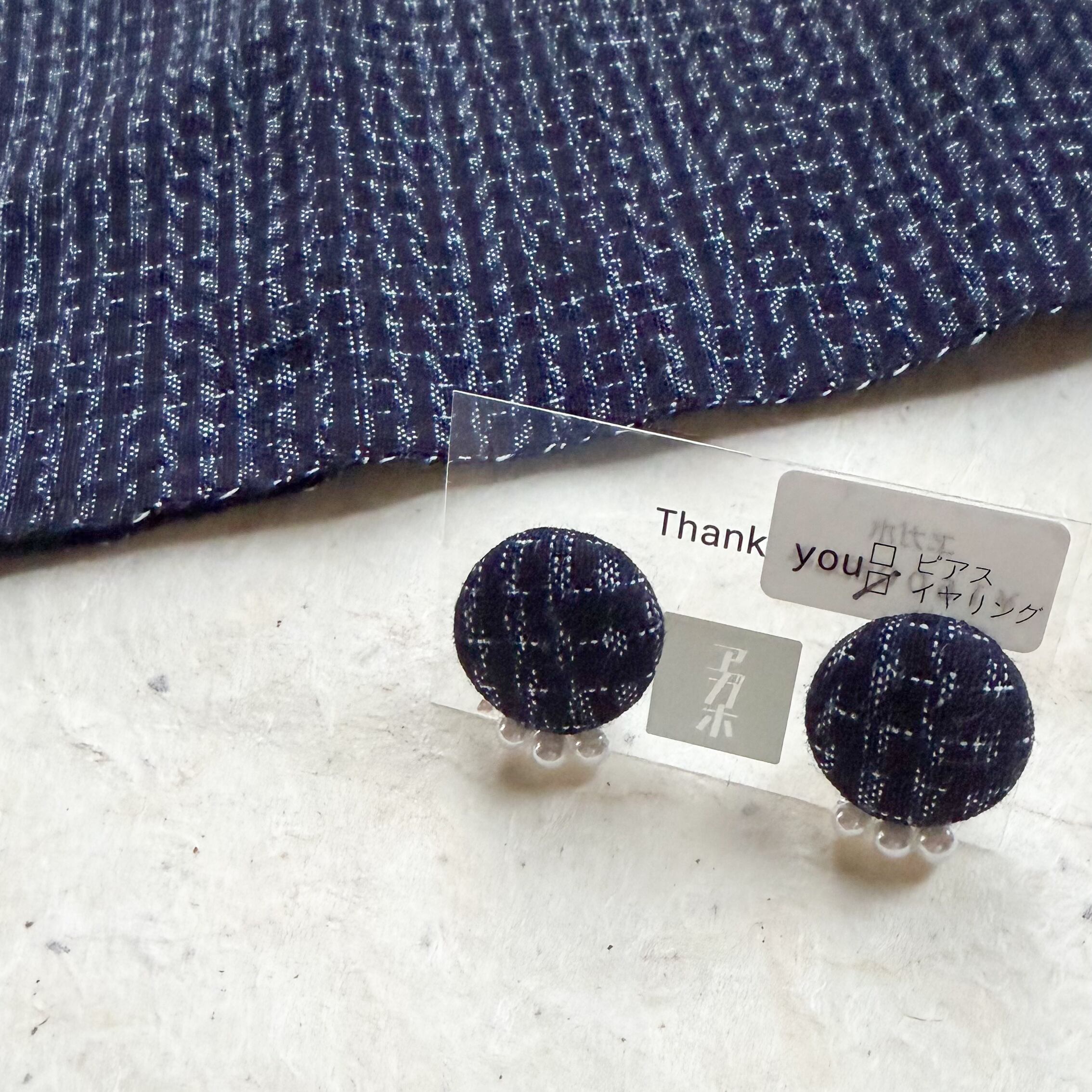 くるみビーズ耳飾り|久留米絣|藍色絣②